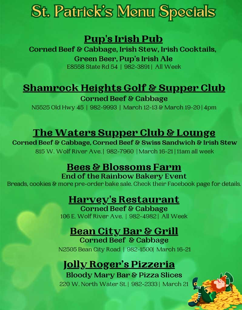 St. Patrick’s Menu Specials Shamrock Club of New Dublin, Inc. Posted on March 13, 2026 by newdublinMarch 13, 2026 Check out the specials around New Dublin during our special events week.
